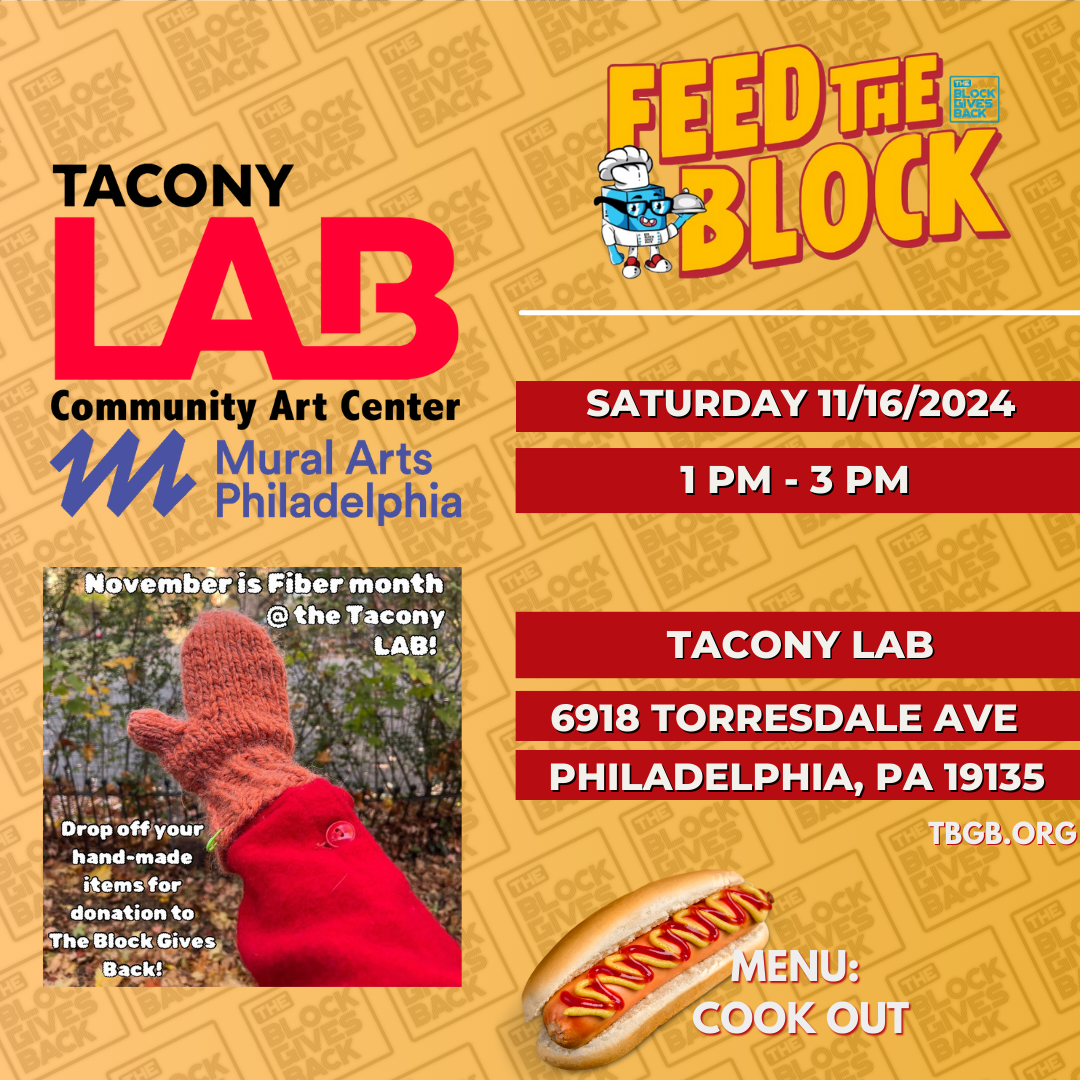 Join TBGB on November 16th, 2024 down the block of Torresdale at Tacony Lab! November is their Fiber Month where they will be collecting hats and gloves for our TENTH End of the Year Jawn! We are extremely happy for this collaboration and look forward to working together!